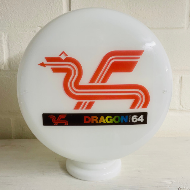 Hand blown milk white opaline mini reproduction glass retro lamp globe with decals applied to both front and reverse faces