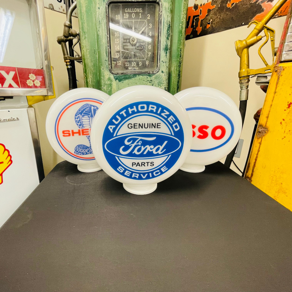 Look great in garages, display cases, shelves, offices, and are an ideal gift for those petrol head and vintage memorabilia addicts! The larger 12" and 15" globes are perfect for that petrol pump restoration, finishing your project with style.